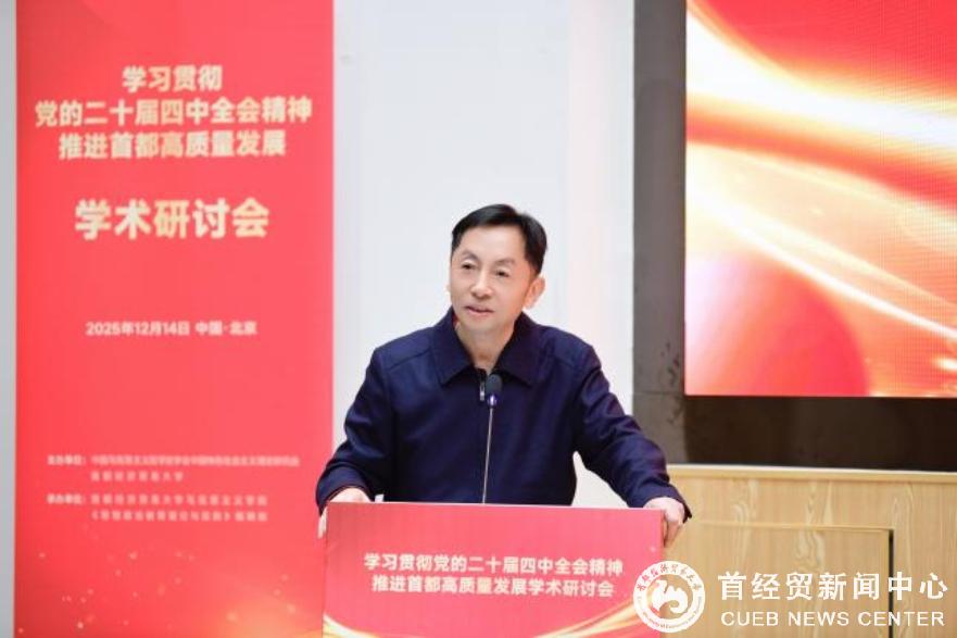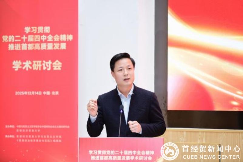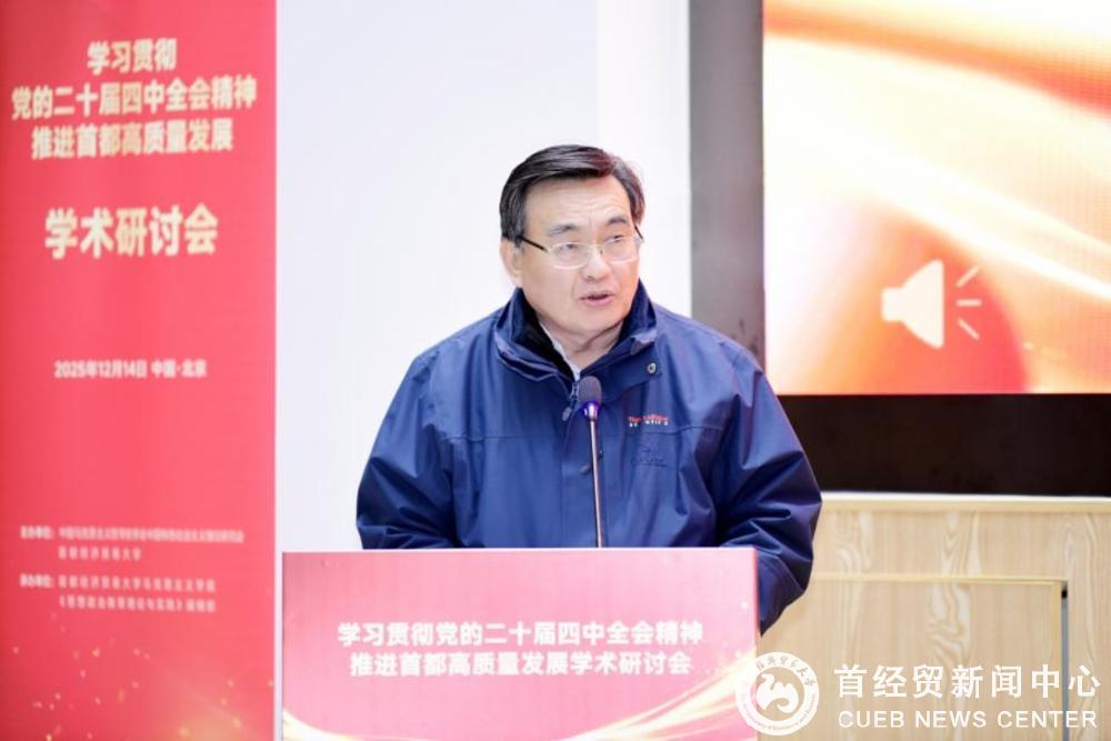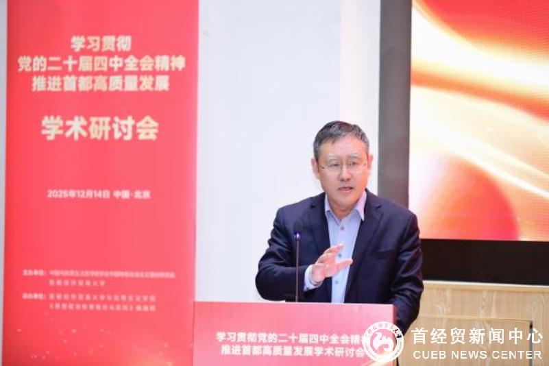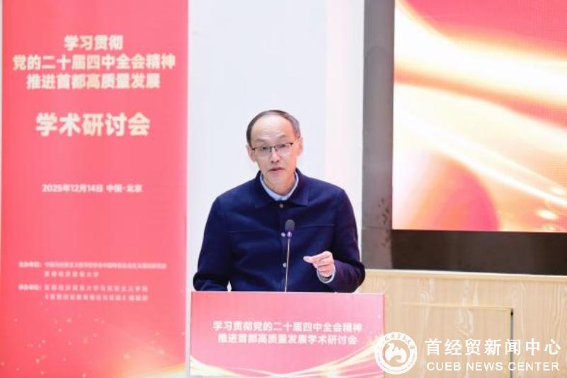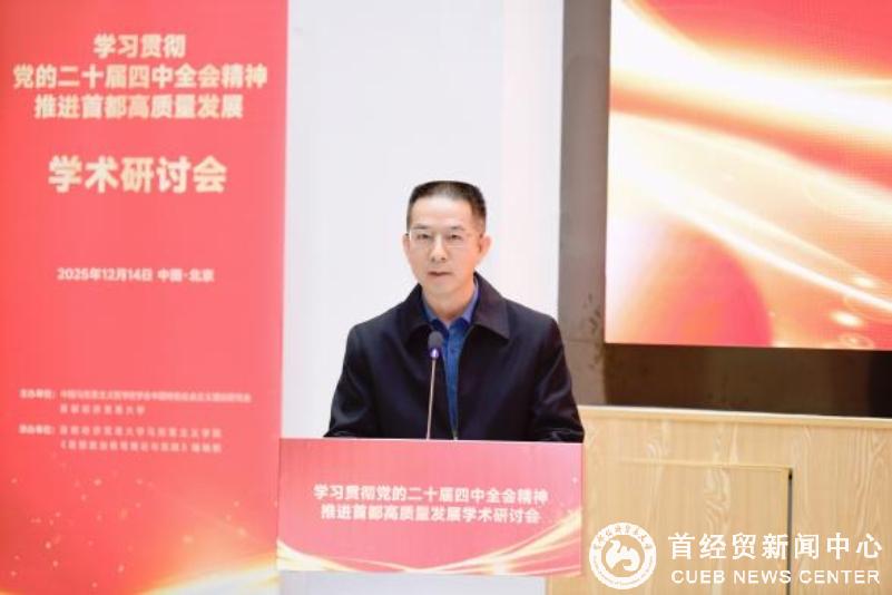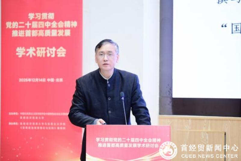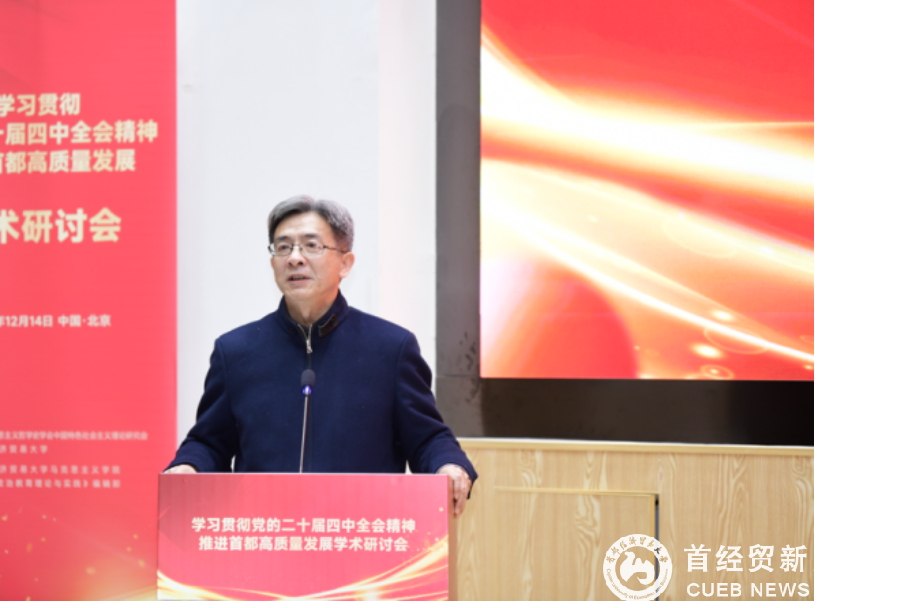 12月14日,由中国马克思主义哲学史学会中国特色社会主义理论研究会(以下简称“研究会”)与首都经济贸易大学共同主办的“学习贯彻党的二十届四中全会精神 推进首都高质量发展”学术研讨会在首都经济贸易大学成功举办。