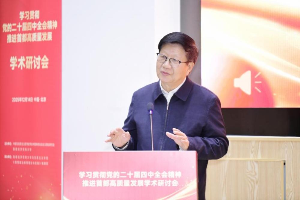 研究会执行会长、中共中央党校(国家行政学院)薛广洲在致辞中回顾了研究会的发展历程与宗旨。他表示,研究会始终坚持以马克思主义科学理论为指导,深入学习贯彻习近平新时代中国特色社会主义思想,致力于构建高水平学术交流平台,产出一系列有影响力的学术成果。薛广洲对会议提出两点期待:一是要深刻把握全会精神对科学编制“十五五”规划的重大指导意义,弘扬“历史主动精神”,充分发挥五年规划这一治国理政重要经验的优势;二是要聚焦首都高质量发展的生动实践,以全会明确的战略定位与目标为引领,为助力北京在全国率先基本实现社会主义现代化贡献学界智慧。